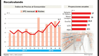 La inflación de este año podría superar el 30%, ubicándose por arriba del 27% prevista por el Gobierno y el Fondo Monetario Internacional (FMI), que basaron sus cálculos en el último Relevamiento de Expectativas de Mercado (REM) del Banco Central. La próxima ronda de aumentos salariales por la reapertura de paritarias, el traslado de la devaluación a los precios y nuevos ajustes en los combustibles y las tarifas empujaron al alza las proyecciones del sector privado, aunque los analistas advierten que la recesión y las tasas altas de interés en pesos podrían servir como dique de contención del proceso.