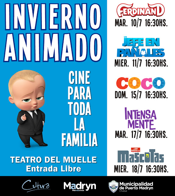 La Subsecretaría de Gestión Cultural de la Municipalidad de Puerto Madryn invita a disfrutar de “Invierno Animado” ciclo de cine para toda la familia, compuesto por premiadas películas de animación.
