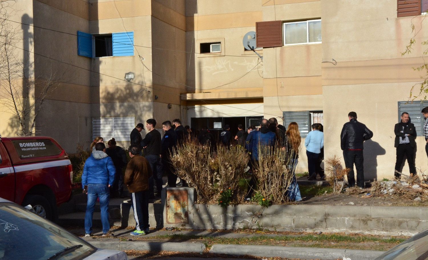 La policía científica se encuentra trabajando en el edificio Inducon de Trelew tras la muerte de una mujer, quien pertenecía de la fuerza policial, y de un hombre.