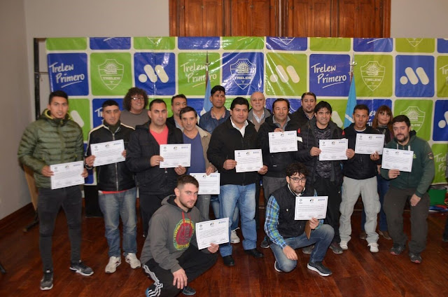 La entrega de los certificados tuvo lugar en el Salón Histórico de la Municipalidad de Trelew, en un acto del que participaron el secretario de Gobierno del municipio, Eduardo Maza; el coordinador de Inspecciones Generales, Héctor López; el titular de la Dirección de Empleo Mauricio Rodríguez; la directora de Inspección, Gladys Cardozo y Daniel Bracchi, jefe del Departamento de Saneamiento Básico del Ministerio de Salud del Chubut.