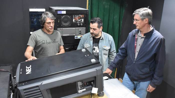 Cabe recordar que para la adquisición del nuevo equipamiento la Municipalidad realizó un llamado a licitación resultando Celuloide Digital la empresa adjudicataria. En el recorrido el Intendente estuvo acompañado por el secretario de Cultura y Educación, Damián Duflós, y el concejal Sergio Sepiurka.