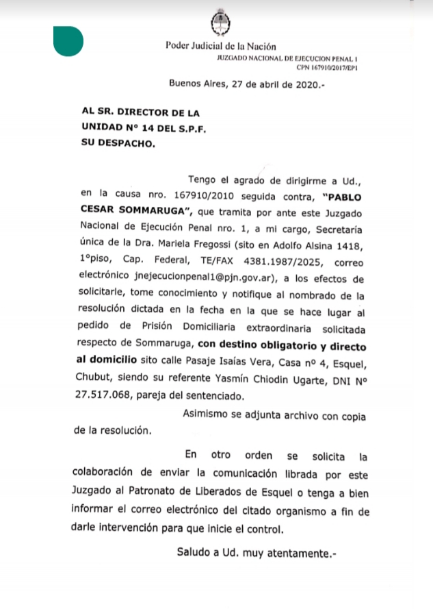 Pablo Cesar Sommaruga se encontraba cumpliendo una condena en la Unidad 14 de Esquel.