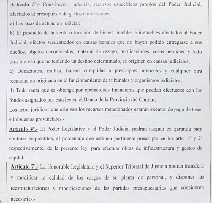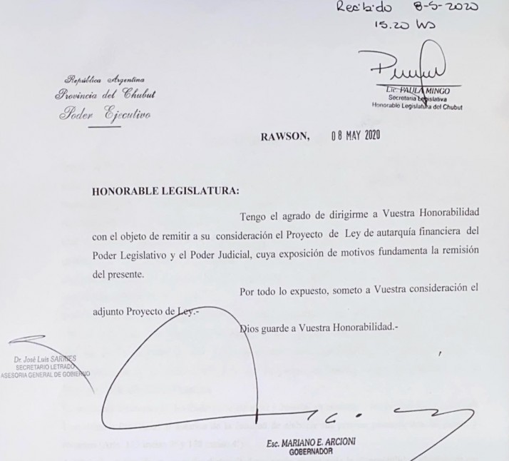 Como se sabe, Arcioni envió a la Legislatura para su aprobación el proyecto de autarquía presupuestaria de los Poderes Judicial y Legislativo, aduciendo que de esa manera facilitaría la «autonomía» y la «independencia» de ambos poderes del Estado.