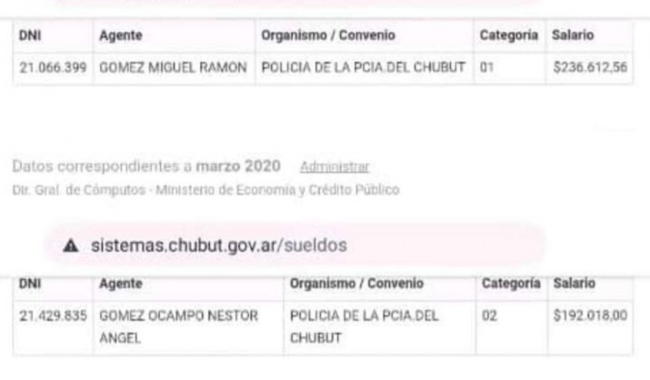 Mientras la gran mayoría de los agentes de la Policía de Chubut reclaman el pago de la cláusula gatillo, el Extremo Sur pudo confirmar que el jefe y el subjefe de la fuerza lo están percibiendo regularmente y sin demoras tal como lo revela la imagen.
