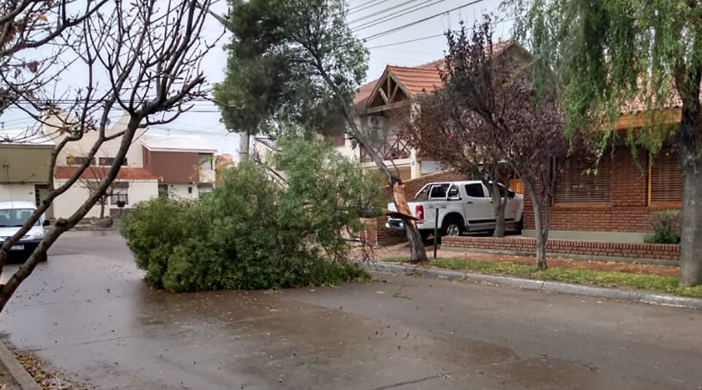Este domingo cerca de las 13.30 se produjo un intenso temporal de viento en la ciudad que generó varios inconvenientes. Se registraron caídas de carteles, árboles y postes, entre otros.
