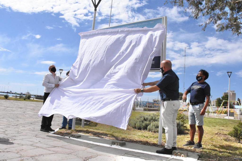 El intendente de Puerto Madryn, Gustavo Sastre, junto a hijos y veteranos de la Guerra de Malvinas, descubrió una nueva cartelería en el predio donde se encuentra ubicado el Monumento a los Caídos. La actividad fue en el marco de la conmemoración del Día de la Soberanía Nacional, ocasión especial donde se rindió homenaje a los héroes de la patria. De este modo, el Ejecutivo Municipal continúa armando el circuito malvinense con la señalización de todos los hitos históricos de la ciudad.