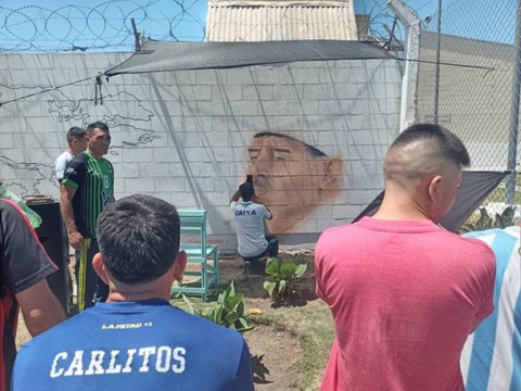 Privados de la libertad y un grupo de artistas realizaron un homenaje al ídolo del fútbol Diego Armando Maradona en la Unidad Nº 43 de González Catán. Pintaron un mural en una de las paredes de la cárcel.