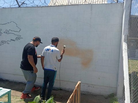 Por otra parte, la seguridad intramuros estuvo a cargo del jefe de Asistencia y Tratamiento Guillermo Krell, el subjefe de asistencia Mauricio Cerdera y el subjefe de Tratamiento Darío Leal, quienes dispusieron los medios necesarios para que la realización del mural se desarrolle de manera adecuada dentro de la unidad.