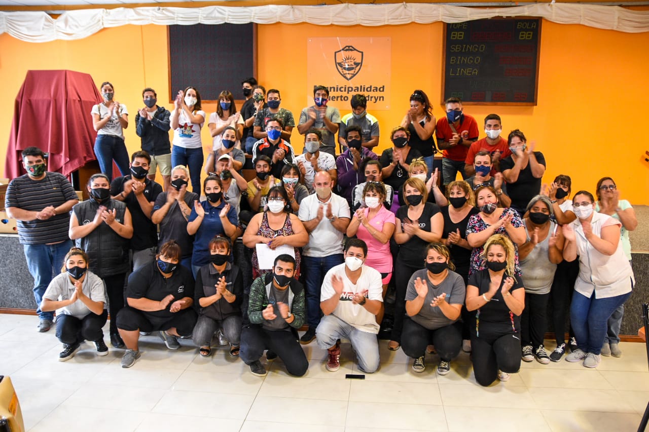 El Intendente estuvo presente en el Bingo Municipal, donde durante los últimos días los vecinos y las vecinas de Puerto Madryn llevaron agua potable, sábanas, ropa y artículos de limpieza, entre otros insumos