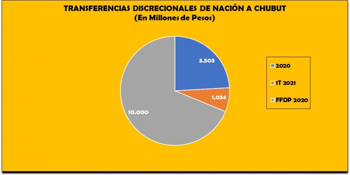 Nación le envió a Chubut 4.537 millones de pesos en concepto de transferencias sin devolución -conforman los fondos discrecionales que distribuye Nación entre las provincias y que no tienen devolución- a lo que se les deben sumar los 10.000 millones de pesos -distribuidos en dos tramos de 5.000 millones- que canalizó como préstamos del ANSES a una tasa de interés baja.