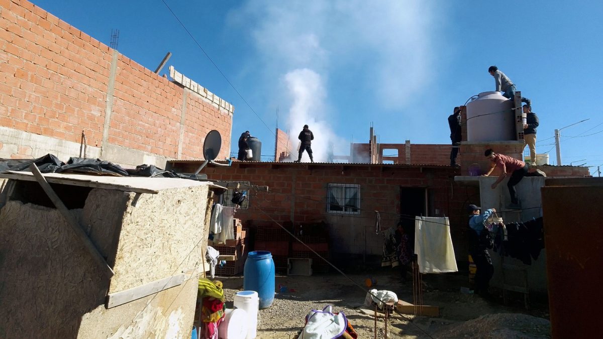 Los patrulleros arribaron al lugar y los efectivos rápidamente subieron a los techos, junto a los preocupados vecinos, para combatir el fuego. Este rápido accionar evitó que el fuego se propagara por el techo de la vivienda lindante. Para combatir las llamas utilizaron baldes de plástico y agua de los tanques del lugar.