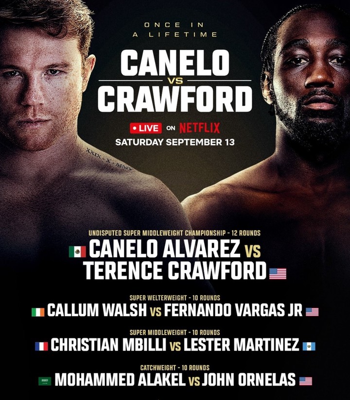 Los suscriptores de Netflix podrán disfrutar del enfrentamiento entre Canelo Álvarez y Terence Crawford como parte de los servicios que ofrece la plataforma de streaming.