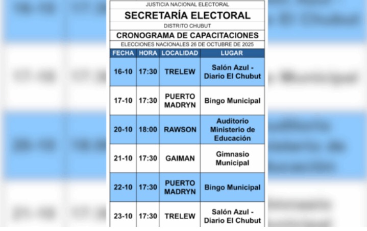 Este jueves la jornada de capacitación para autoridades de mesa se realizará en el salón azul de diario El Chubut desde las 17,30.