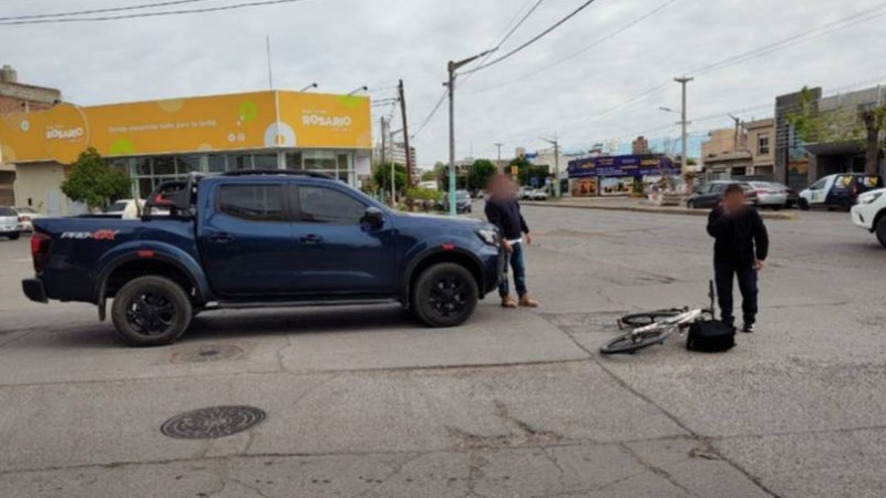 Una camioneta Nissan azul embistió a un ciclista esta mañana en la intersección de Centenario y Avenida Hipólito Yrigoyen, en Trelew.