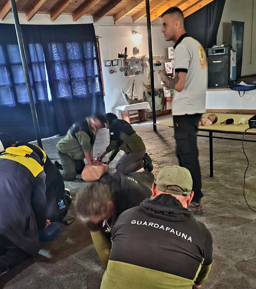 El personal municipal y los guardafaunas practicaron técnicas fundamentales de Reanimación Cardiopulmonar (RCP), los criterios para manejar obstrucciones de las vías respiratorias como también los procedimientos para controlar hemorragias e inmovilizar a personas con posibles fracturas.