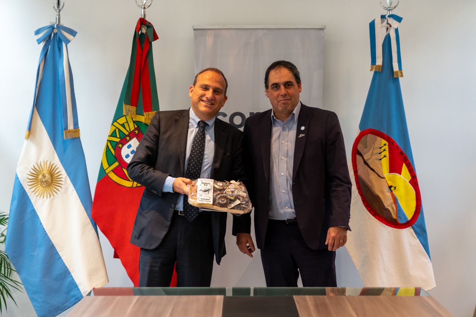 Gonçalo Teles Gomes, ponderó el desarrollo que tiene Comodoro “que más allá de los hidrocarburos de los que toda la gente habla, es un territorio que tiene mucho potencial en todo lo que es tema de pesca de mar, energía renovable y economía del conocimiento. Hablamos –destacó- de experiencias similares en Portugal y de cómo podíamos colaborar”, al tiempo que resaltó que “Comodoro tiene un hermanamiento firmado con un gran municipio en Portugal, con Faro en Algarve. De hecho, es la región donde viven la mayor parte de los portugueses que están en Comodoro”.