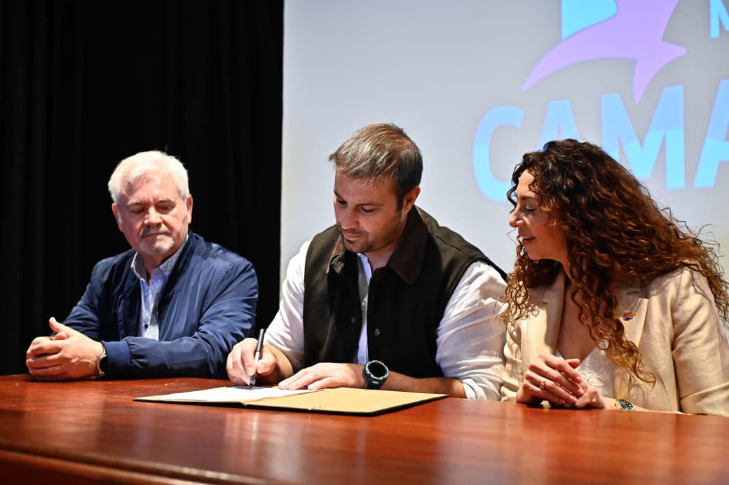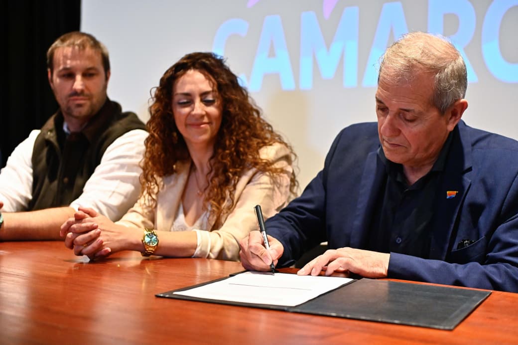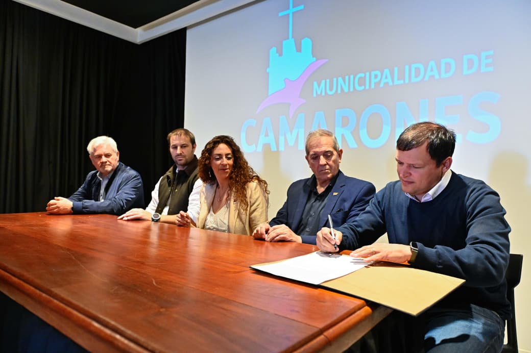 A las 11:30 horas, en el Centro de Encuentro Municipal de Camarones (CEMM), se llevó adelante la firma de convenios con organismos provinciales y locales; el primero de ellos, entre la Administración de Vialidad Provincial y la Municipalidad de Camarones para la construcción de 653 metros lineales de cordón cuneta en avenidas de la localidad, el cual fue rubricado por el titular del organismo, Federico Drescher, y por la intendenta Claudia Loyola.
