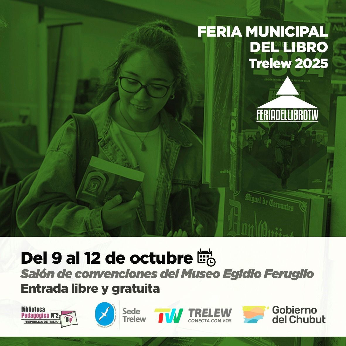 La Municipalidad de Trelew anuncia la segunda edición de la Feria del Libro y las Artes, que se realizará del 9 al 12 de octubre en el salón de convenciones del Museo Egidio Feruglio (MEF).
