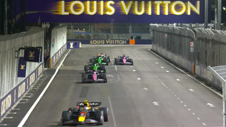 En el circuito callejero de Marina Bay, el argentino tuvo una buena salida donde logró escalar tres posiciones luego de realizar un divebomb, es decir, se metió al costado de la pista evitando el tráfico y pasó a tres pilotos, tal como hizo en 2024.