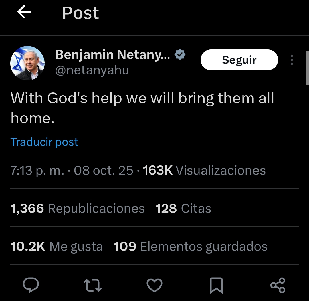 Además, resaltó el esfuerzo de las fuerzas de seguridad israelíes: “Gracias al coraje y sacrificio de nuestros soldados y fuerzas de seguridad. Si Dios quiere, juntos seguiremos logrando todos nuestros objetivos y ampliando la paz con nuestros vecinos”.