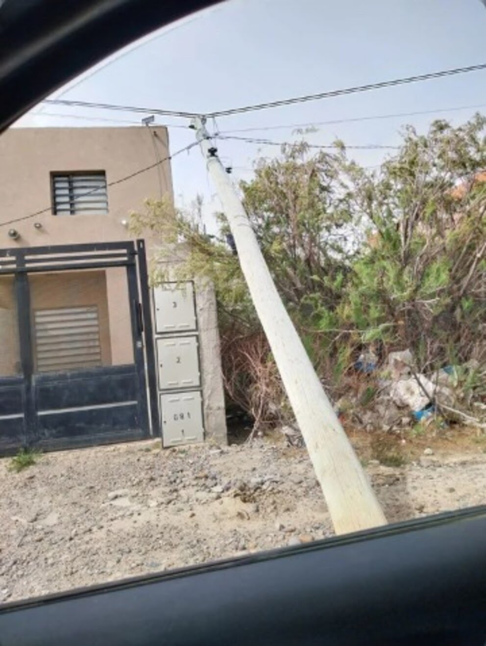 Los daños estructurales tampoco se hicieron esperar. En instalaciones petroleras de Manantiales Behr, árboles de gran porte fueron arrancados de raíz y cayeron sobre camionetas. En el sector norte, sobre calle Los Delfines (Kilómetro 5), una ráfaga levantó un domo que fue desplazado varios metros, generando riesgo para transeúntes. También se reportaron chapas desprendidas, tanques de agua caídos, vidrios de automóviles rotos y la caída de un árbol sobre una vivienda en barrio Sismográfica, Kilómetro 3.
