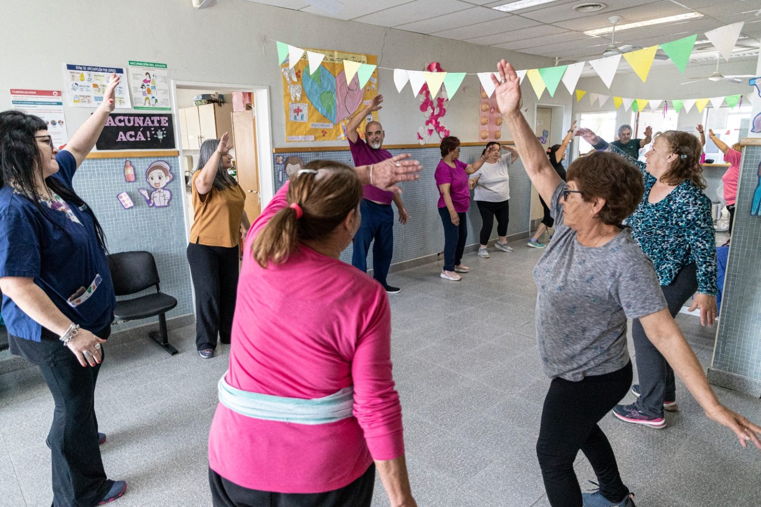 Se dicta todos los martes. Un grupo de vecinos concurre a la jornada de educación física para estimular la salud mental, emocional y recreativa. Muchos de los participantes transitan patologías, pero adoptaron la actividad física en pos de mejorar todos los aspectos de la salud.
