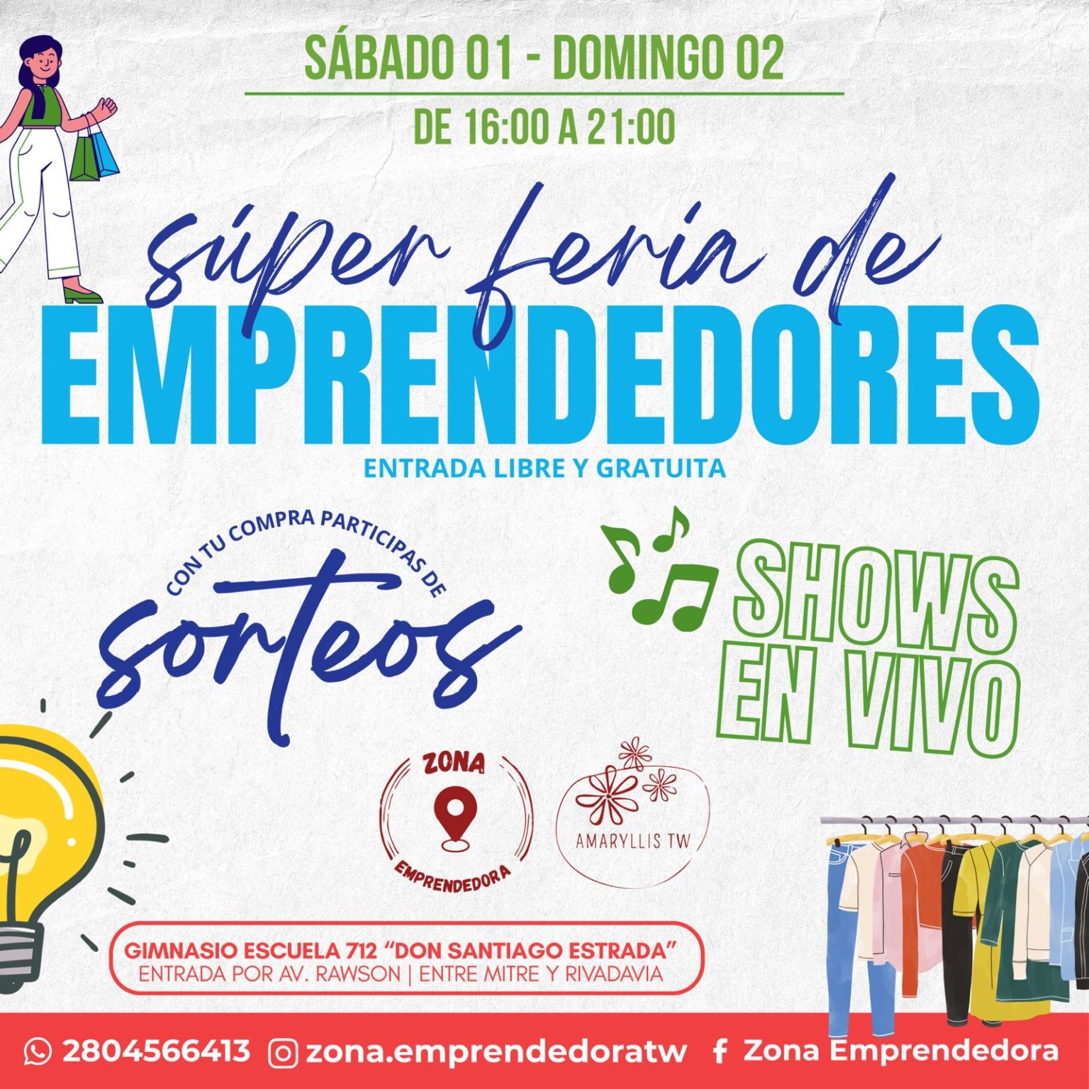 La emoción está en el aire porque llega la primera edición de la Super Feria de Emprendedores. El sábado 1 y domingo 2 de noviembre, el Gimnasio de la Escuela 712 se convertirá en el epicentro del emprendimiento y la diversión, ingreso por Av. Rawson, entre Mitre y Rivadavia de 16 a 21 hs.