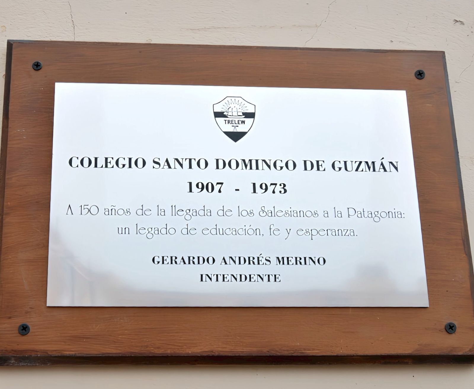 La Municipalidad de Trelew celebró esta mañana un emotivo acto en homenaje al ex colegio Santo Domingo de Guzmán, el primer establecimiento salesiano de la ciudad, ubicado en el histórico patio de la Catedral María Auxiliadora, donde también se conserva la piedra fundacional del colegio.
