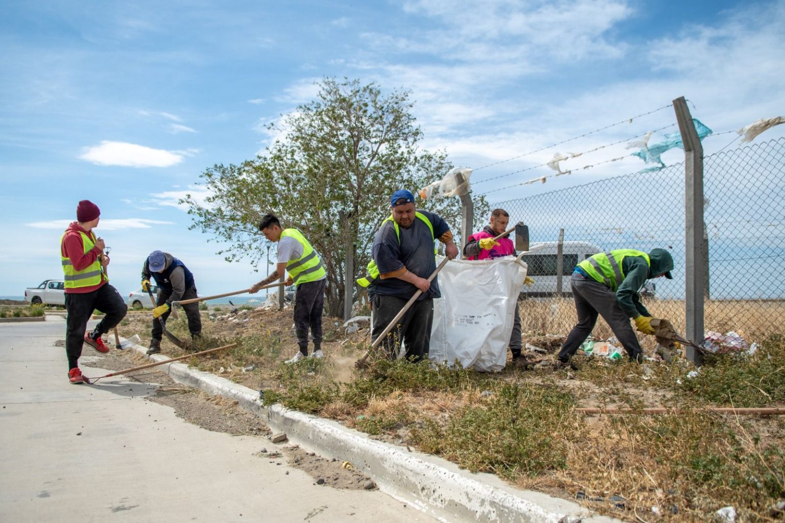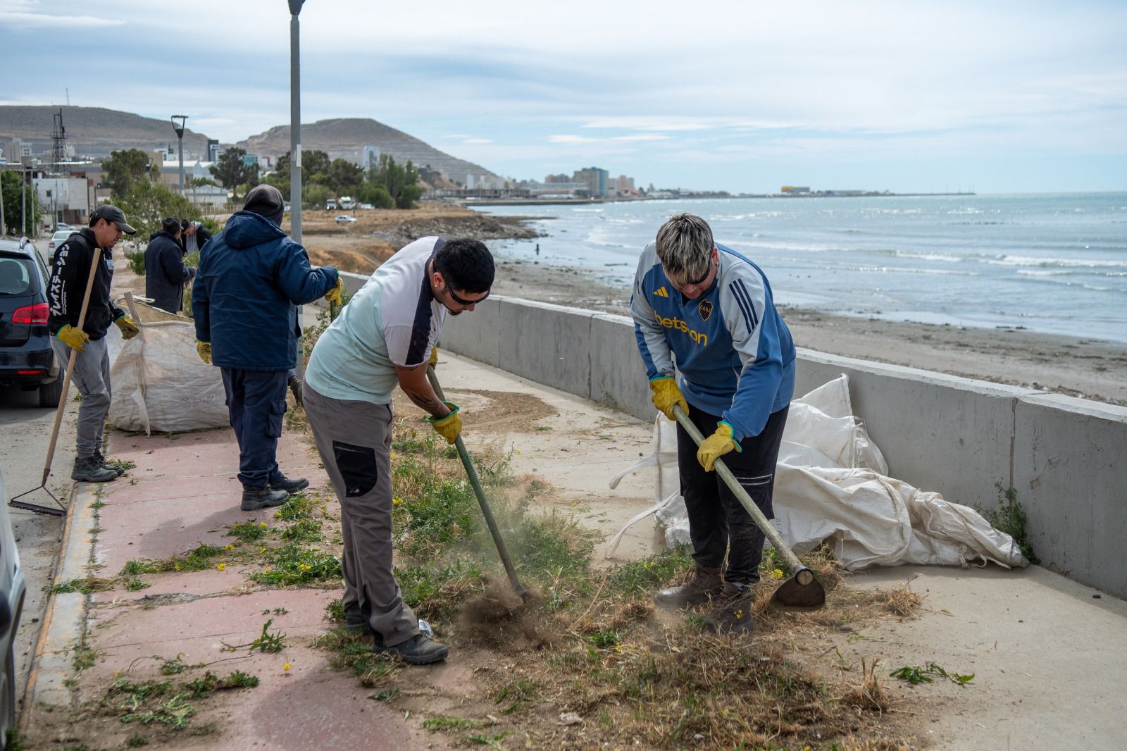 Las distintas tareas incluyeron principalmente el desmalezado de yuyos y recolección de residuos. Sobre la amplia intervención, el responsable de Economía Social, Ricardo Fueyo, contó que se está concretando “una profunda limpieza a todo el Paseo Costero y en la avenida principal del barrio, sacando la basura y los arbustos”.