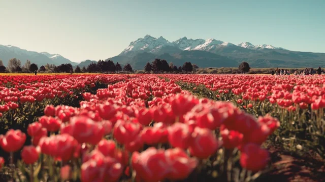 Cada primavera, el campo de tulipanes ubicado en Trevelin —a solo 26 kilómetros de Esquel— se transforma en uno de los paisajes más fotografiados del país. Rodeado por las montañas de la cordillera, el sitio ofrece una paleta de 42 variedades de tulipanes y más de un millón de flores en simultáneo, creando un espectáculo visual incomparable.