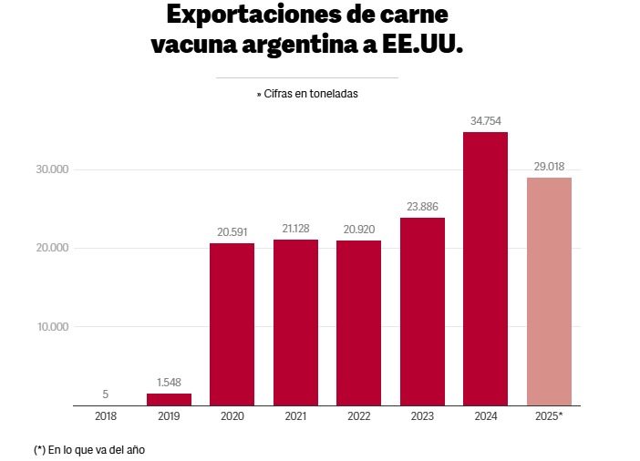 En medio de su búsqueda por disminuir los precios de la carne, Trump “está incrementando cuatro veces la cuota arancelaria para la carne argentina, llevándola a 80.000 toneladas métricas (88.185 toneladas) al año”, según le dijo un funcionario de la Casa Blanca a Bloomberg.