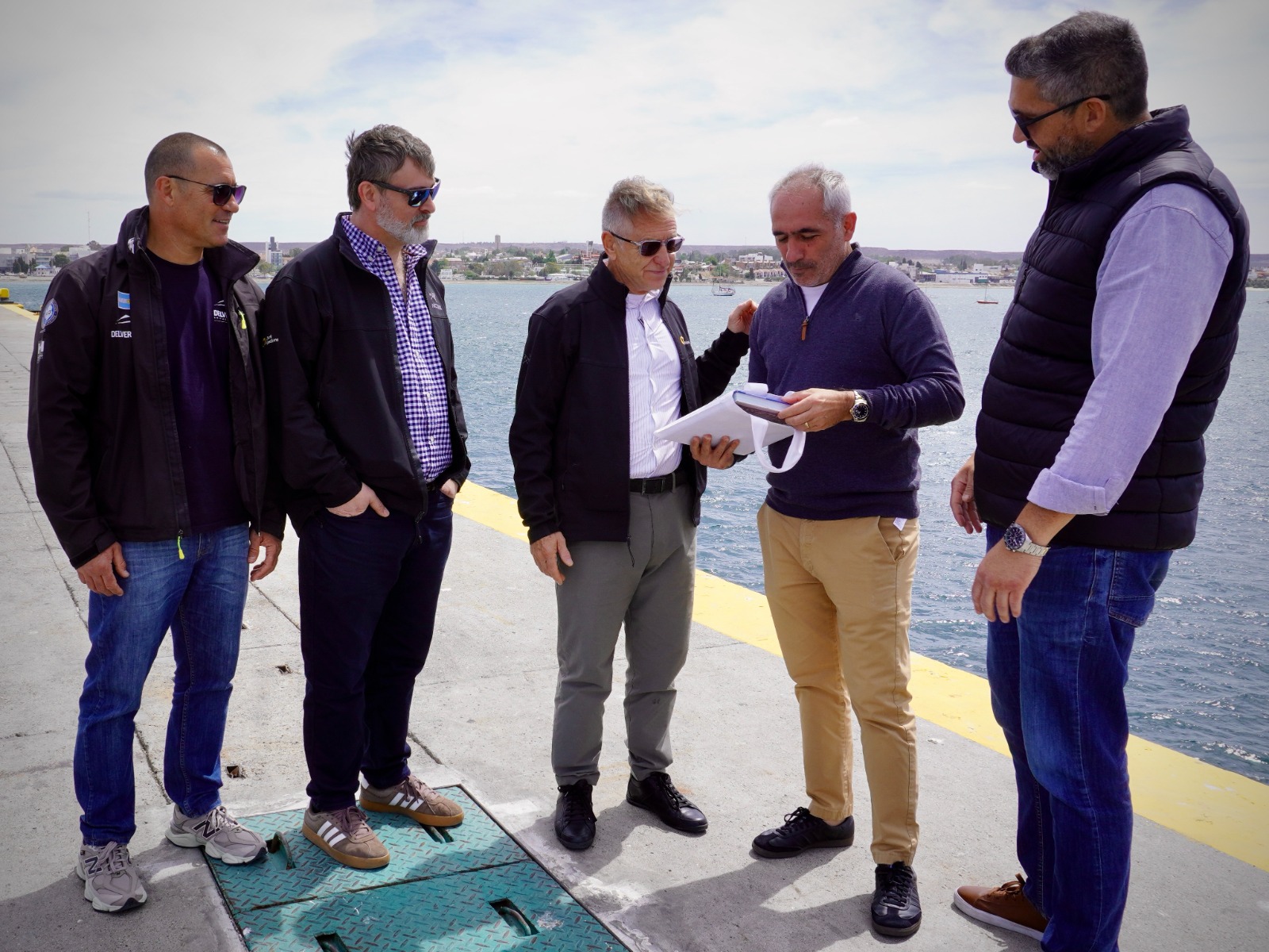 Durante la visita, los directivos recorrieron las instalaciones del Muelle Comandante Luis Piedra Buena con el propósito de evaluar las condiciones operativas y logísticas del puerto, en el marco de la planificación de una ampliación de su operatoria en la región.