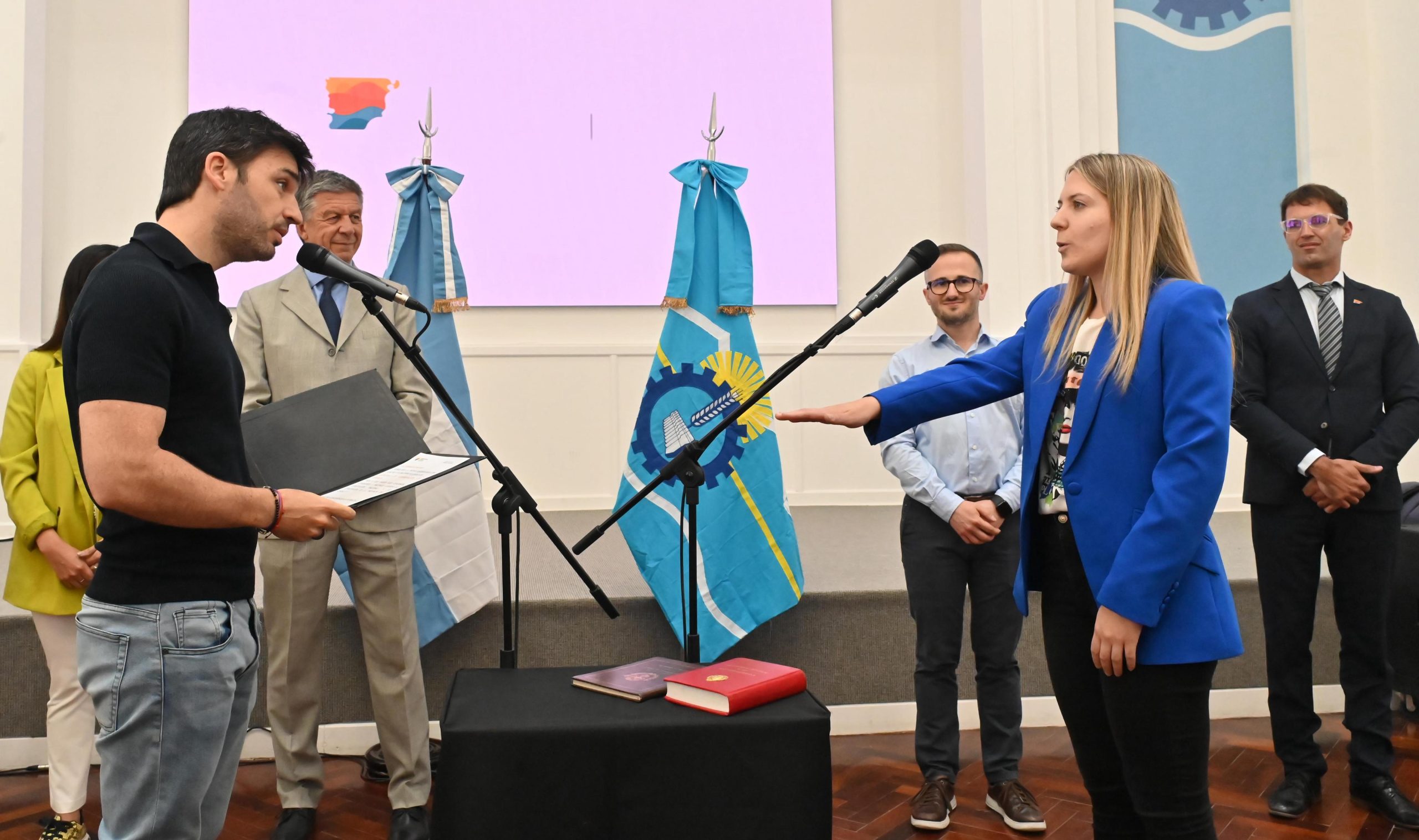 Ambos funcionarios prestaron juramento de ley ante el mandatario en un acto realizado en horas del medidía en el Salón de los Constituyentes de la Casa de Gobierno con las presencias del vicegobernador Gustavo Menna; diputados provinciales; el intendente de Trelew, Gerardo Merino; ministros y secretarios del gobierno de la provincia, entre otros.