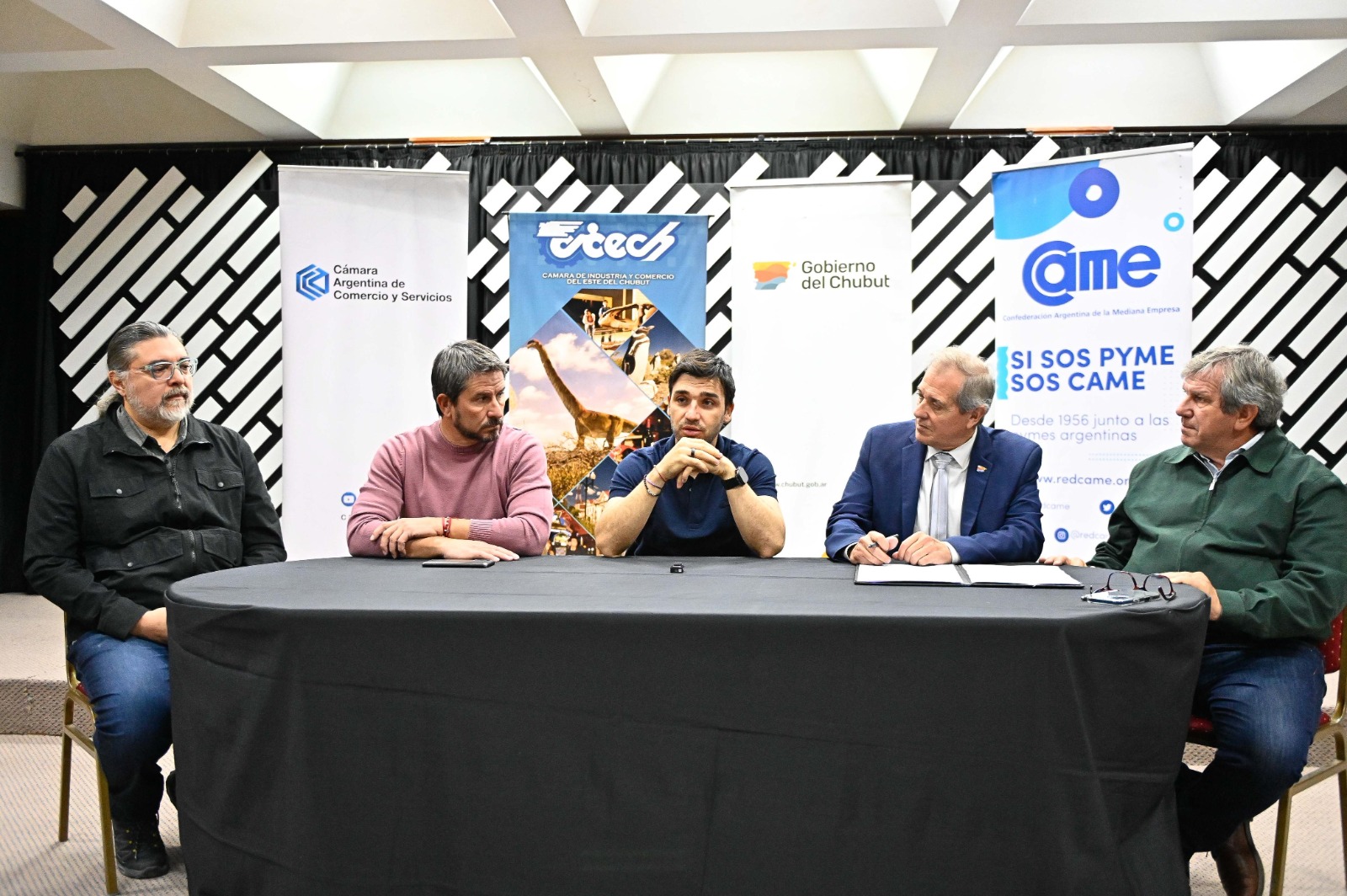 Torres encabezó la firma del acuerdo entre el Ministerio de Educación de Chubut y la Federación Empresaria del Chubut (FECh), acompañado por autoridades locales y representantes de la industria. El mandatario destacó la importancia de la cooperación entre sector público y privado: “Está buenísimo trabajar en conjunto donde el privado tiene un rol vinculante, no sólo venir a escuchar lo que se va a hacer”, afirmó.