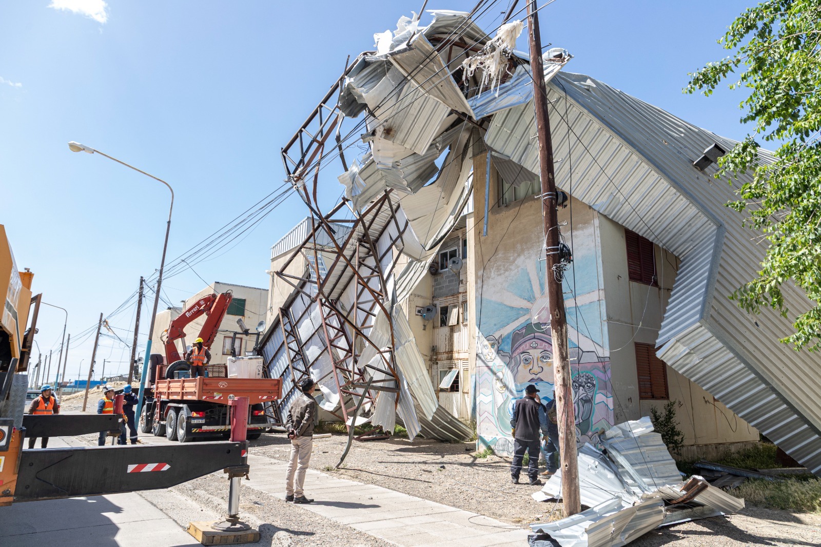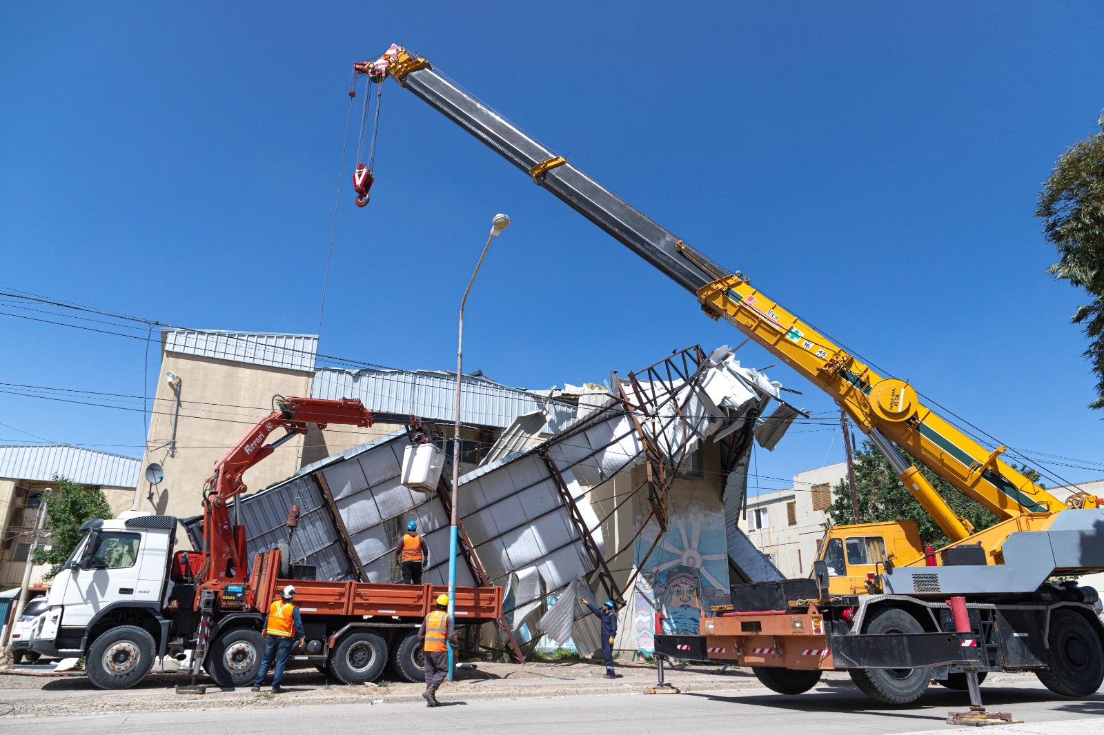 En ese contexto, Miguel Gómez indicó que, “tal como lo había dispuesto el intendente Othar Macharashvili, comenzamos a trabajar en el retiro de la estructura que se desplazó de un edificio a otro en el barrio 30 de Octubre, un techo de grandes dimensiones. El subsecretario Walter Navarro, junto con su equipo, concretaron la llegada de una grúa y están trabajando en el sector, cortando la estructura en partes más pequeñas para su posterior retiro. Entendemos que estas tareas demorarán algunos días, siempre y cuando el clima acompañe”.