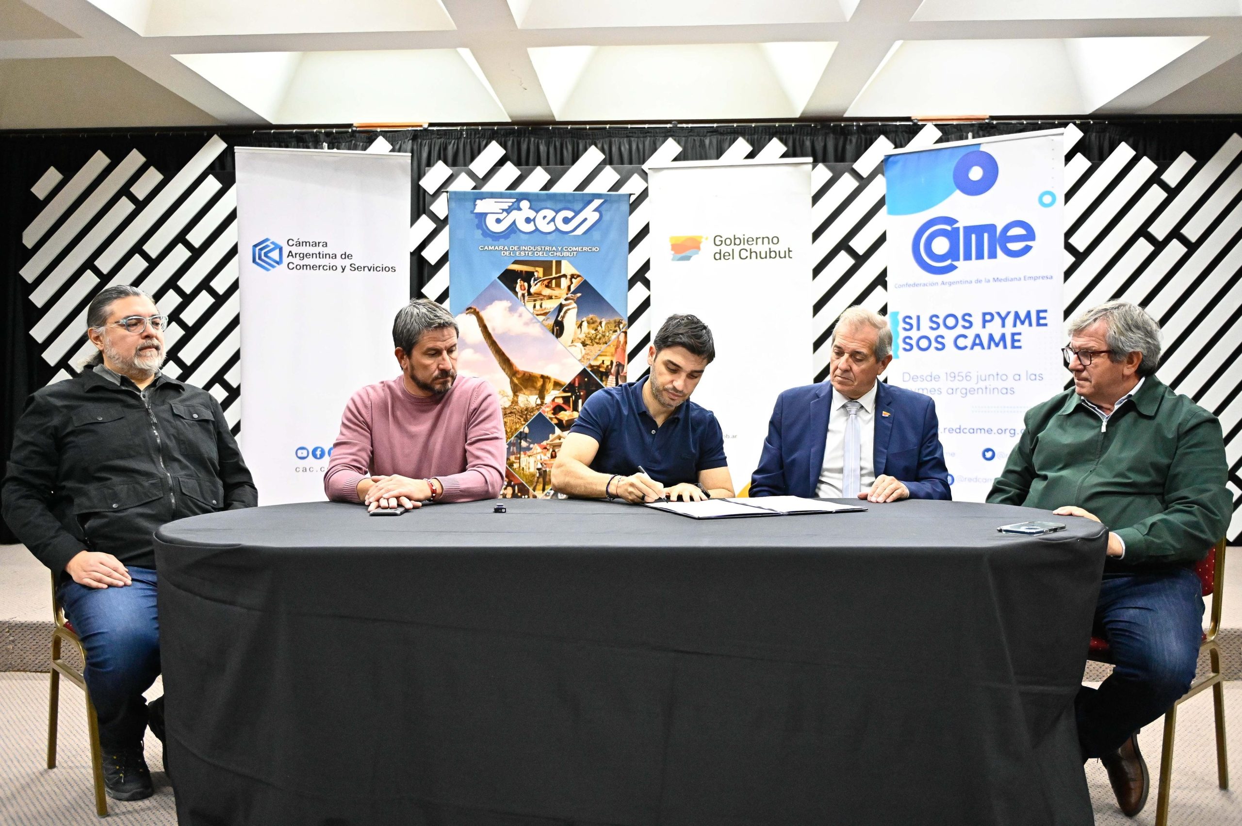 La actividad se llevó adelante en las instalaciones de la Cámara de Comercio de Trelew, y también contó con la participación del intendente local, Gerardo Merino; el ministro de Educación provincial, José Luis Punta; y el presidente de la FECh, Carlos Lorenzo; además del titular de la CICECh, César Pailacura.