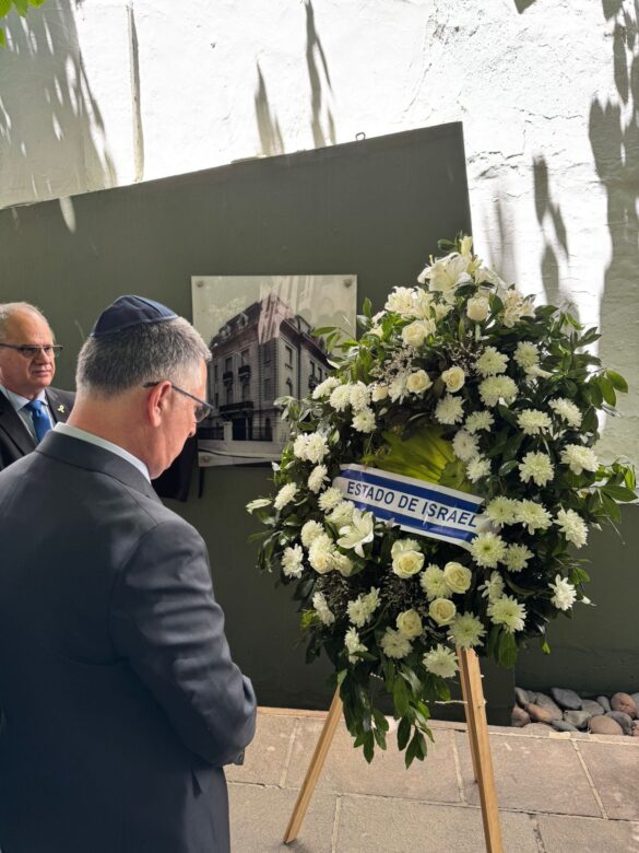 Durante el acto, el ministro colocó una ofrenda floral y realizó una instancia de reflexión frente a la pared que conserva los restos del edificio destruido y las placas en memoria de los diplomáticos israelíes, empleados locales y ciudadanos argentinos y de otras nacionalidades asesinados en el atentado, perpetrado por Hezbollah bajo órdenes de la República Islámica de Irán.