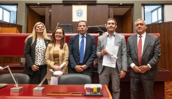 En un acto desarrollado en la Legislatura del Chubut, Juan Pablo Luque recibió su diploma como diputado nacional electo de manos del juez de la Cámara Federal de Apelaciones de Comodoro Rivadavia, Javier Leal de Ibarra; el juez federal, Hugo Sastre; y la ministra del Superior Tribunal de Justicia, Camila Banfi.