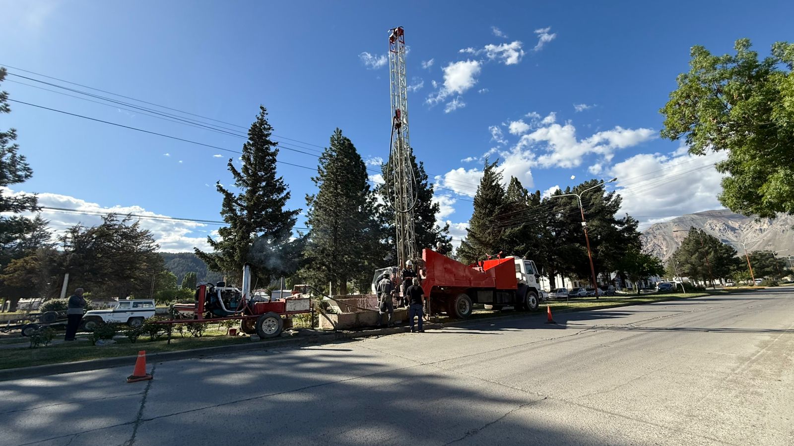 La Municipalidad de Esquel lleva adelante una nueva perforación en Avenida Ameghino, entre las calles Vuelta de Obligado y Miguens, con el objetivo de garantizar el riego de las plazoletas y espacios verdes durante la temporada de verano.