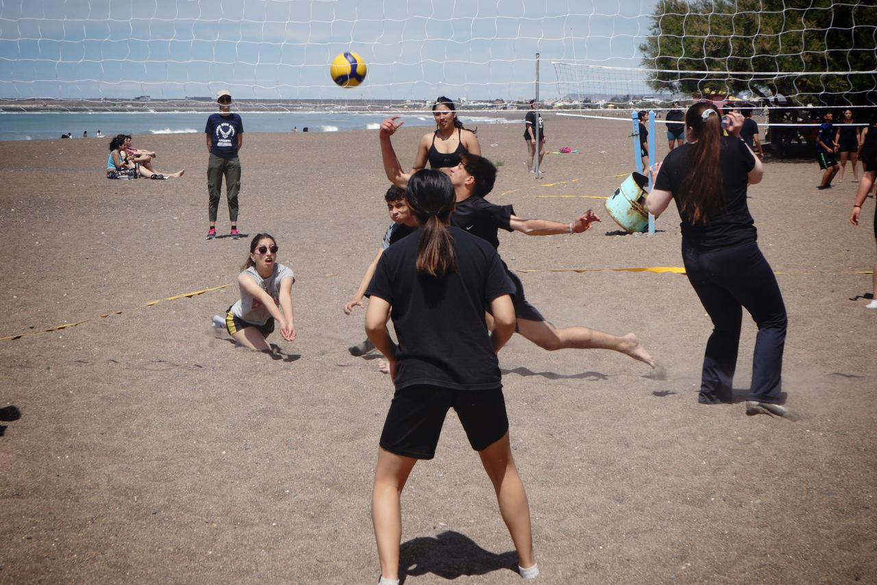Con una destacada participación de estudiantes de las escuelas secundarias de la ciudad, la Coordinación de Juventud de la Municipalidad de Rawson llevó adelante el torneo de vóley mixto el viernes 21 de noviembre en la costa de Playa Unión, en el marco del certamen Intercapital 2025.