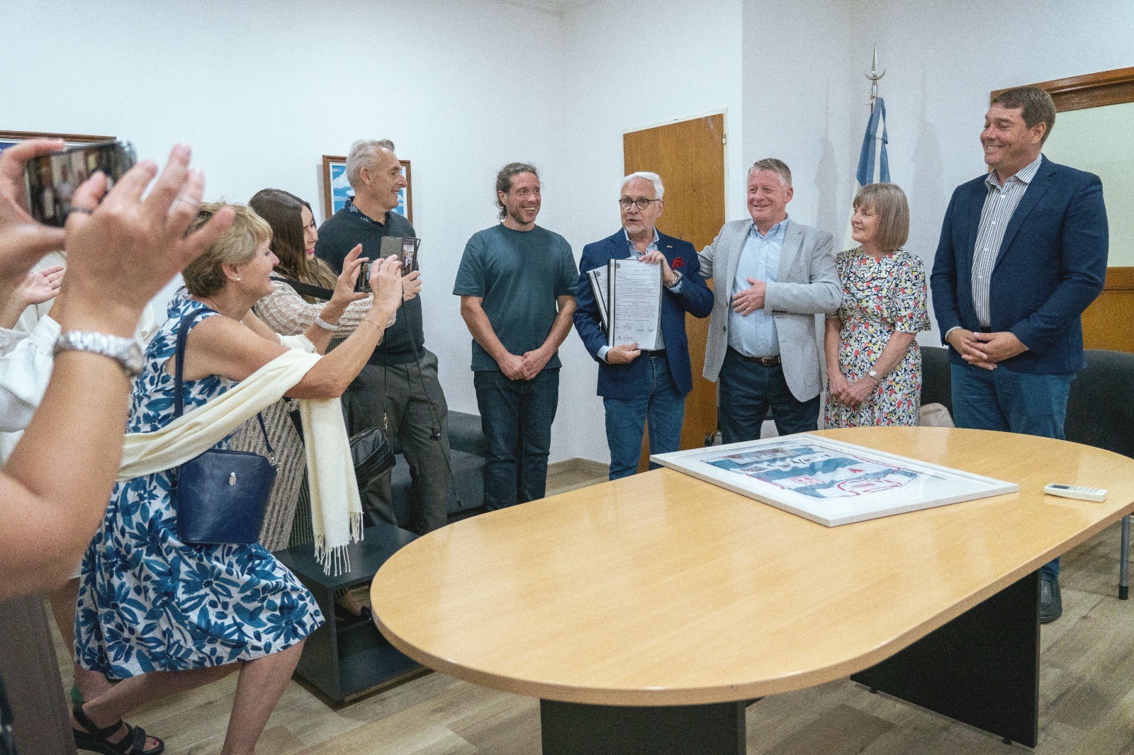Durante la recepción, se confirmó la participación de un joven becario de Rawson en un intercambio cultural con Gales, consolidando los lazos entre ambas comunidades.
