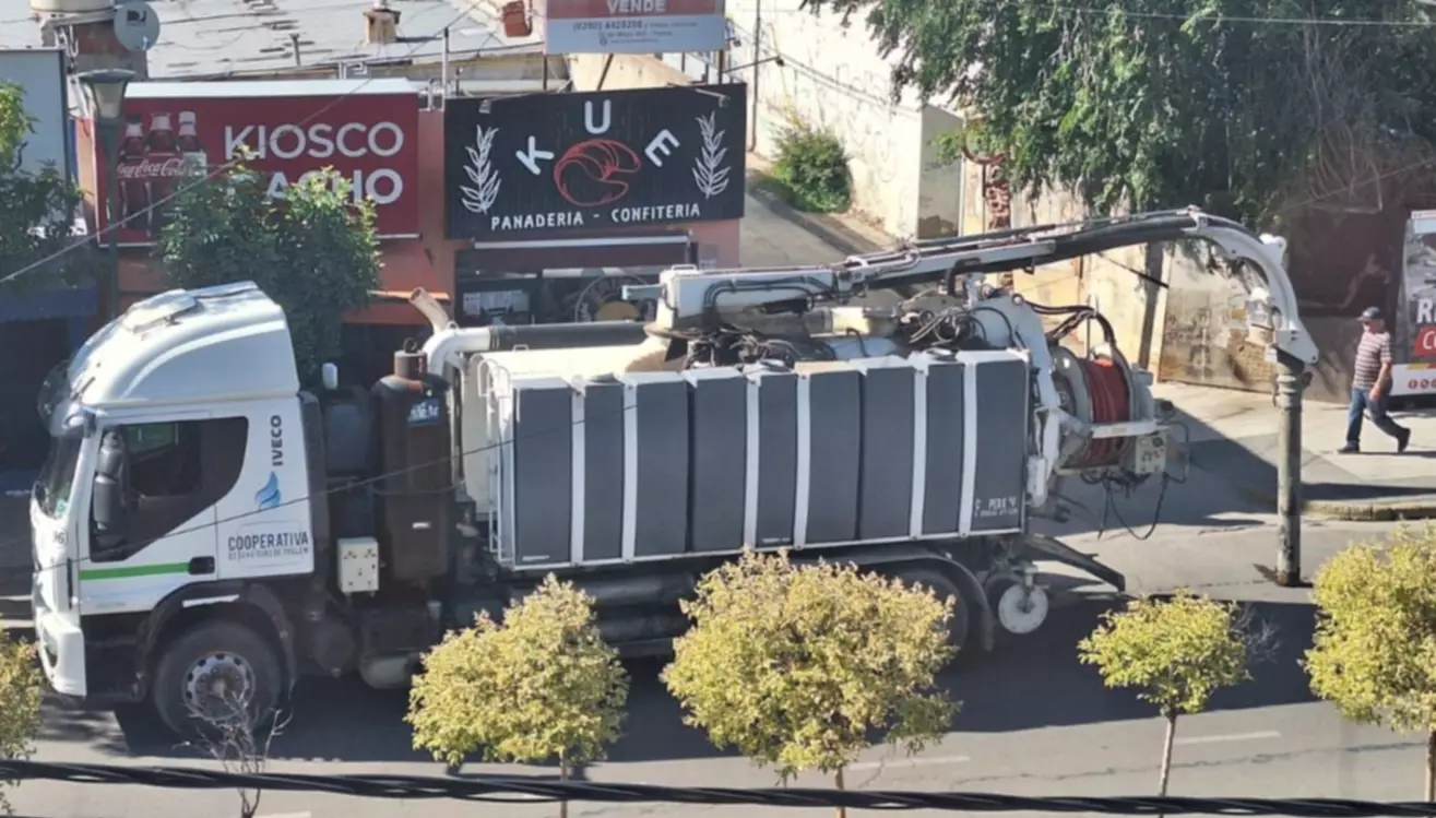 Ante los reiterados reclamos, la Cooperativa de Servicios de la ciudad movilizó un camión desobstructor hacia la céntrica calle 9 de Julio para solucionar el problema en la red cloacal.