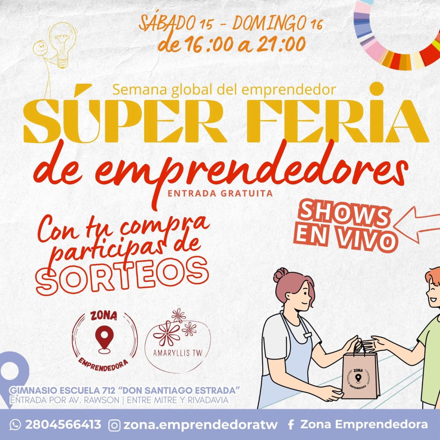 La Super Feria de Emprendedores tendrá una nueva edición el 15 y 16 de noviembre en el Gimnasio de la Escuela 712 (Av. Rawson, entre Mitre y Rivadavia) de 16 a 21 hs.