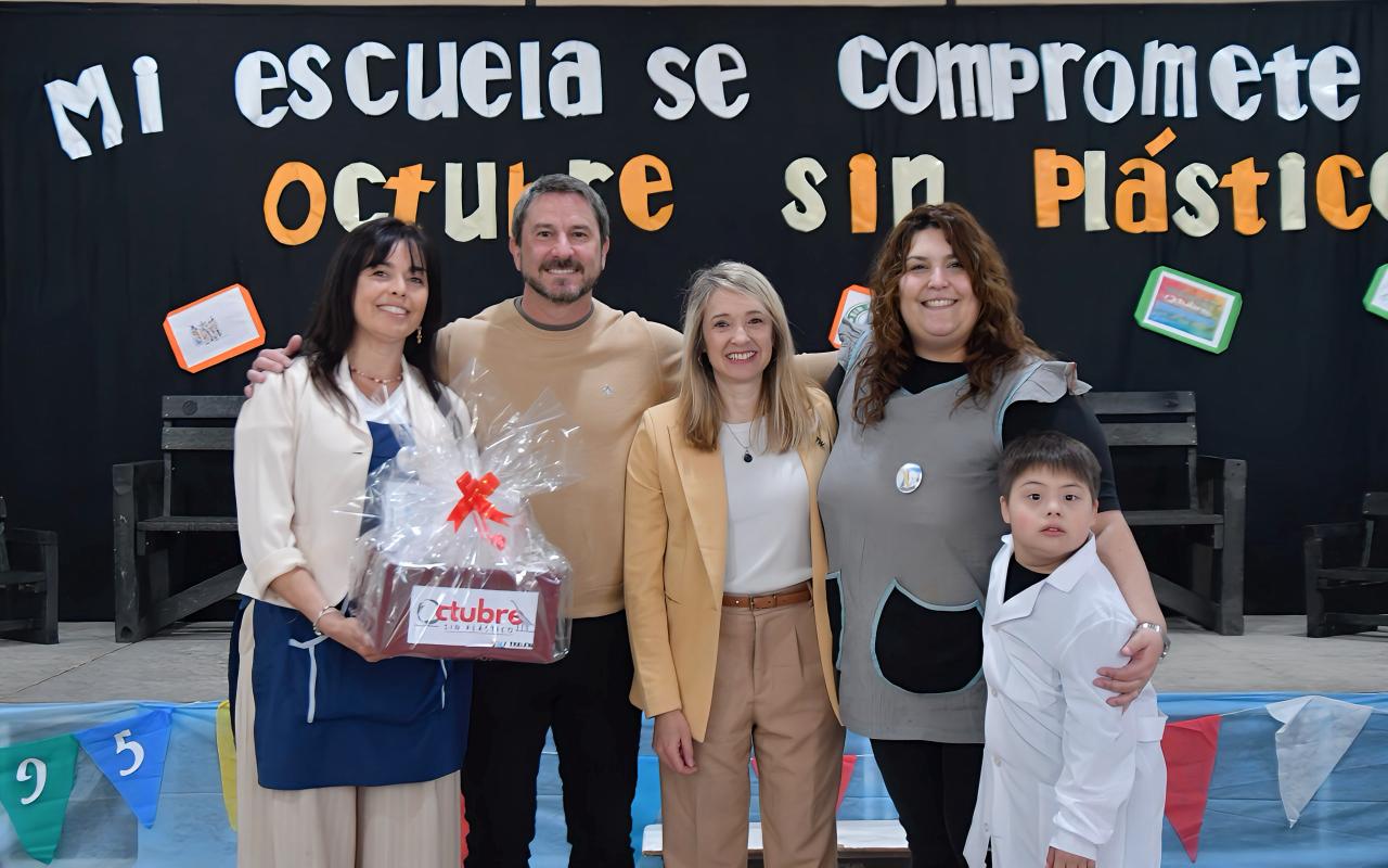 El intendente entregó premios a escuelas por su compromiso ambiental en el cierre de la campaña “Octubre sin Plástico”.