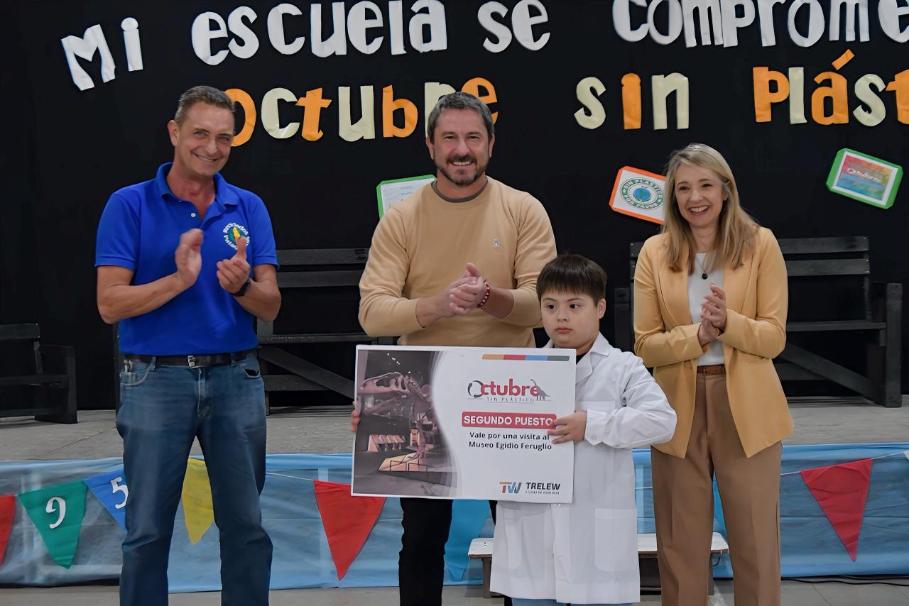 El intendente Gerardo Merino afirmó que «estamos atravesando un cambio cultural en materia de residuos», al presidir el acto de premiación de la segunda edición de “Octubre sin Plástico”, una iniciativa organizada por la Municipalidad de Trelew para promover hábitos sostenibles y reducir la generación de residuos. La actividad se realizó en la Escuela N.º 195, con la presencia de concejales, autoridades municipales, representantes de Reciclados Patagónicos y comunidades educativas.