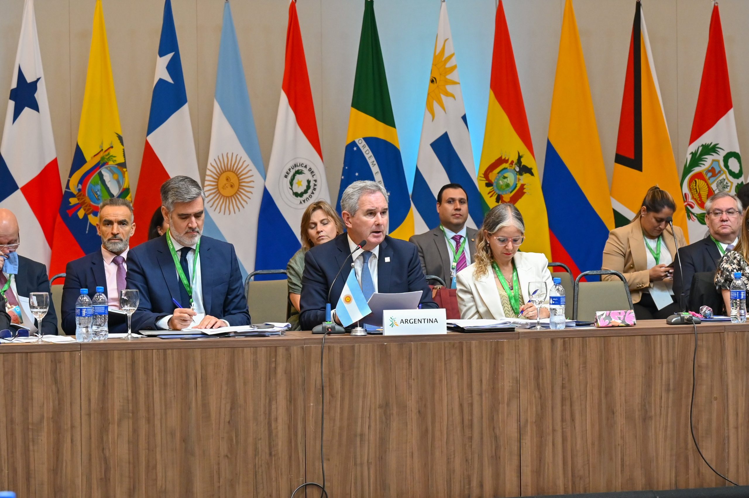 En un punto aparte de su intervención, el canciller argentino también agradeció el respaldo de los países del bloque a los reclamos diplomáticos de Argentina sobre los derechos soberanos sobre las Islas Malvinas, Georgias del Sur, Sándwich del Sur y los espacios marítimos circundantes, destacando la importancia de la unidad regional en temas de soberanía.