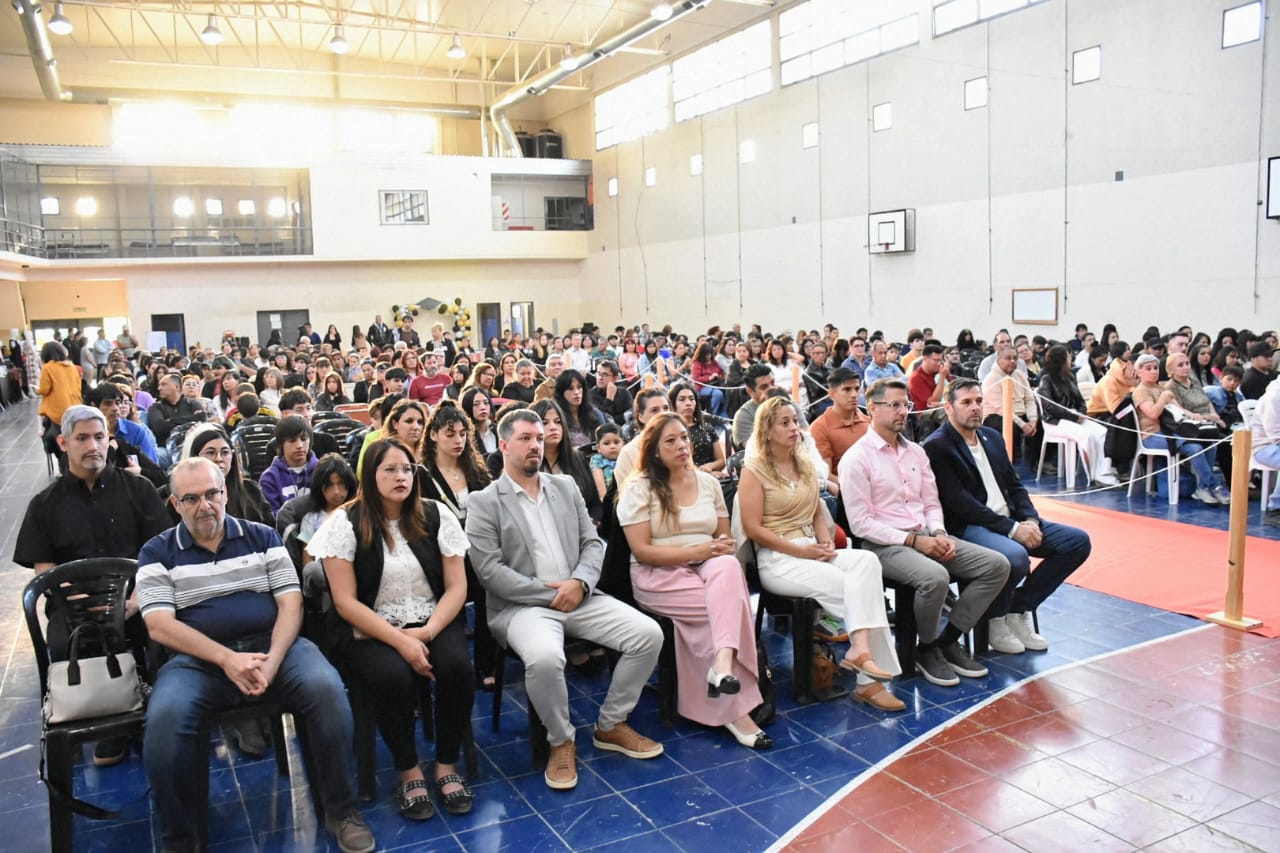 El acto se realizó en el gimnasio de la Escuela N.° 751 y puso en valor el trabajo articulado con instituciones educativas y organismos provinciales para fortalecer la inserción laboral en la ciudad.