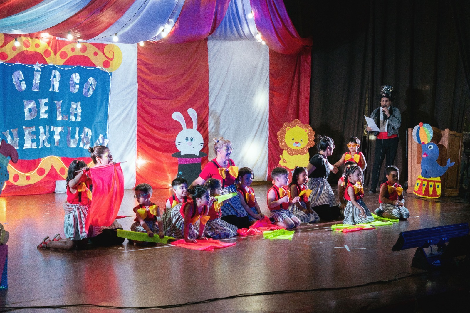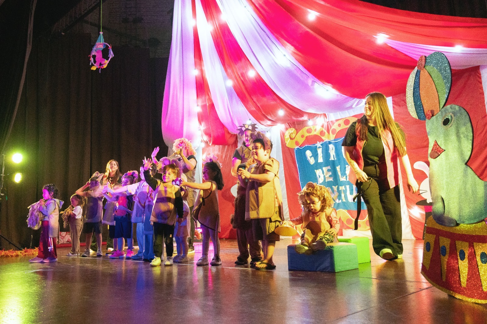El acto de cierre incluyó una espectacular presentación circense titulada «Circo Aventura», que marcó el broche de oro de un año lleno de actividades. La jornada se desarrolló en tres funciones: a las 9:00 horas, a las 12:00 horas para la sala maternal, y a las 15:00 horas para el turno de la tarde. Familias, docentes y autoridades municipales compartieron un momento de emoción y celebración.