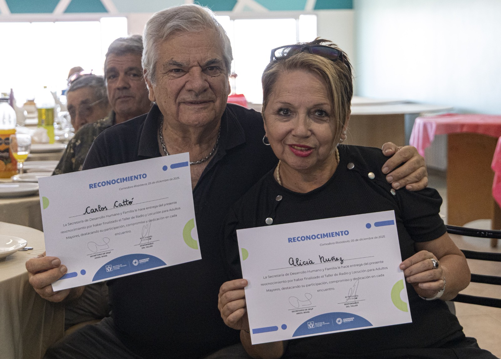 En ese marco, Ángel Rivas, indicó que, por segundo año consecutivo, “realizamos este Taller de Radio y Locución y estamos muy contentos por concretar este cierre con más de 50 participantes. Para nosotros, es importantísimo seguir acompañando y brindando este tipo de espacios para nuestros adultos mayores”.