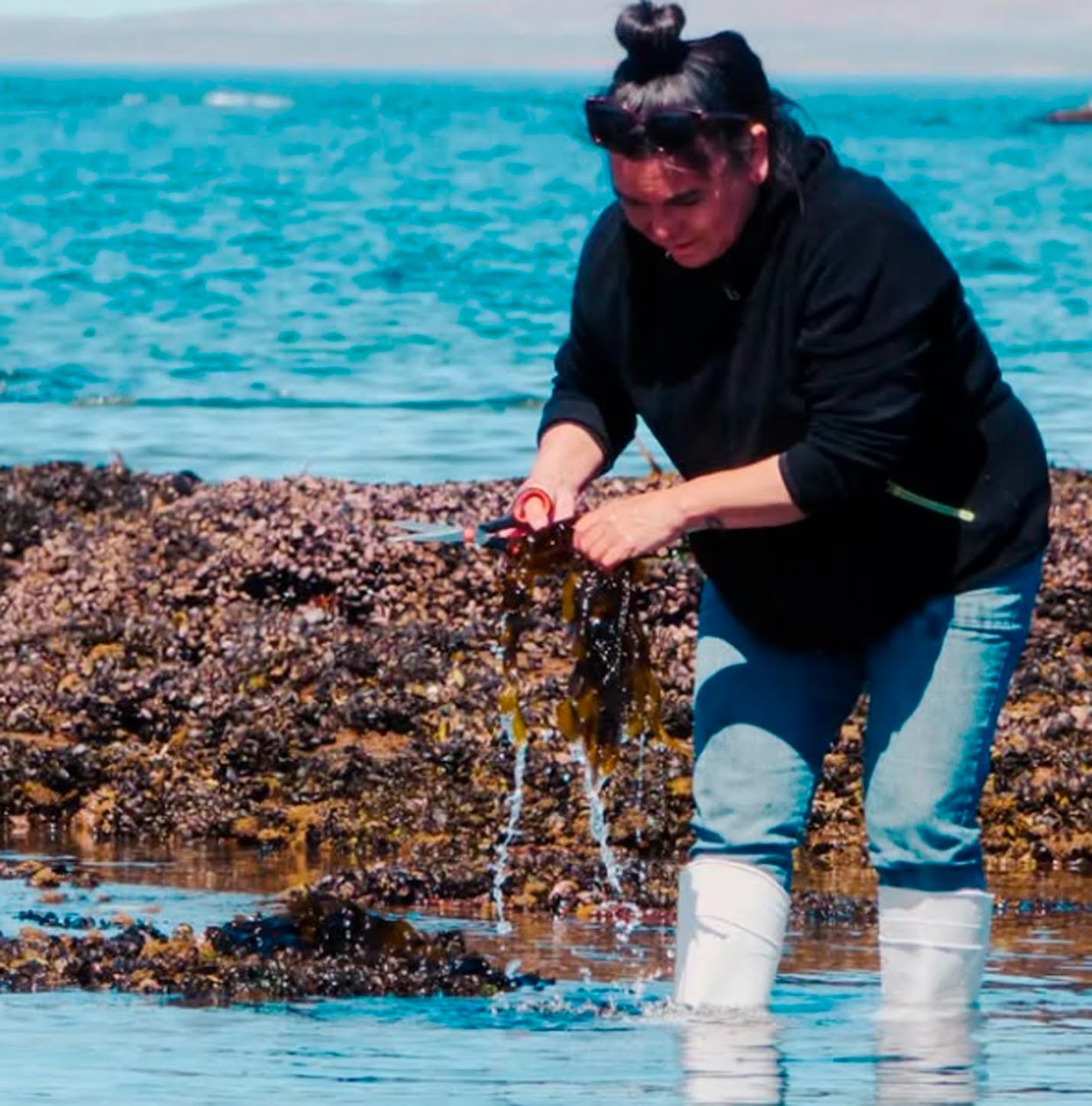 Carola incorporó una rutina: caminar hasta la bahía, esperar la baja marea y cosechar el alga directamente desde las rocas. A veces también recibe Undaria recolectada por un joven buzo que consigue piezas más profundas.
